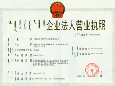 資產(chǎn)評估公司營業(yè)執(zhí)照