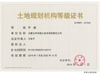 土地規(guī)劃機構(gòu)等級證書