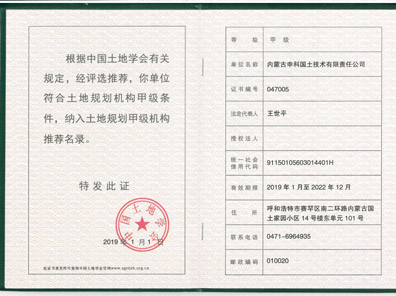 土地規(guī)劃機(jī)構(gòu)等級(jí)證書